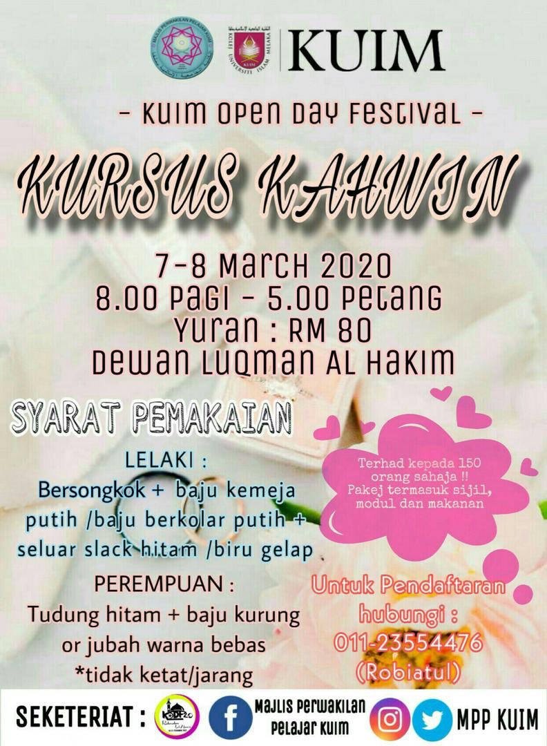 Majlis Perwakilan Pelajar Universiti Melaka On Twitter Jum Sertai Kursus Kahwin Di Kolej Universiti Islam Melaka Terbuka Kepada Semua Mahasiswa I Dan Orang Luar Juga Ya Promosi Hanya Di Kuim Dan Terhad Sahaja Kepada